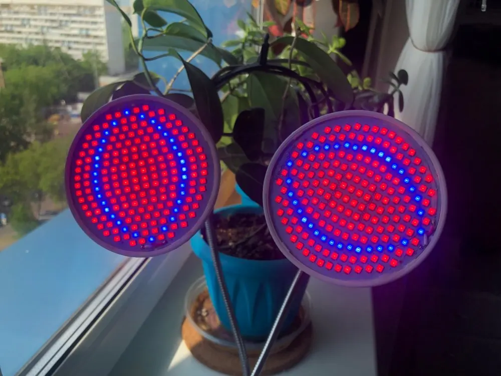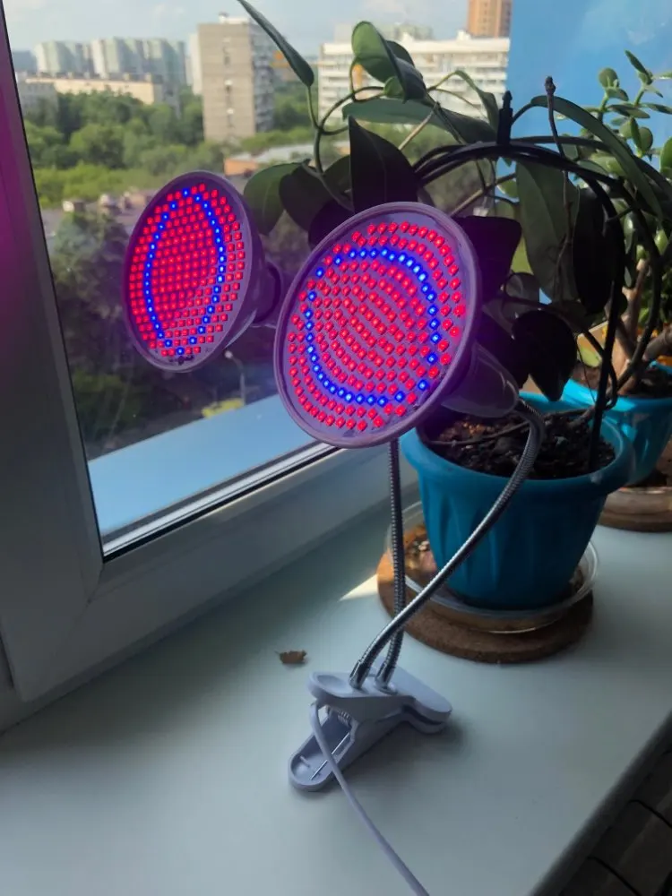 My house is growing ipomea and I do not know why, but her leaves become sluggish without good daylight. Soon the cold and keep on the balcony will not be possible, so I ordered a lamp. After a day on the windowsill, these “pancakes” under the lamp still returned to themselves the hardness of a sheet of paper, so the lamp definitely works) and was still very surprised, when I ordered not the largest number of diodes a lamp, and in my hand it was just huge)