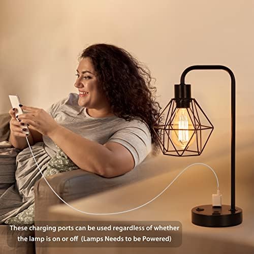 HAITRAL Black Industrial Desk Lamp, Fashionable Farmhouse Desk Lamp with Twin USB Charging Ports and AC Outlet, Bedside Nightstand Desk Lamps for Bed room, Studying,Presents