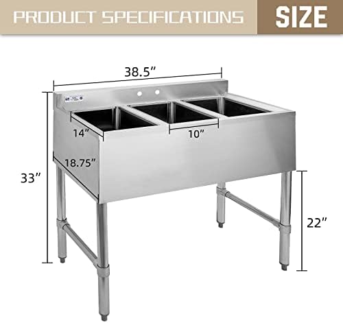 Skilled Design**the bar sink has three enormous bowl 10″ L x 14″ W x 10″ D which makes it giant sufficient for soaking and washing. Total measurement Size: 38 1/2” L x 18 3/4” W x 33” H. And the backsplash higher stop water splashes and wall from being stained by soiled water