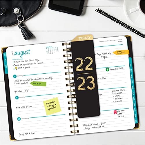 HARDCOVER Tutorial 12 months 2022-2023 Planner: (June 2022 By July 2023) 5.5″x8″ Each day Weekly Month-to-month Planner Yearly Agenda. Bookmark, Pocket Folder and Sticky Be aware Set (Black Gold Numbers)
