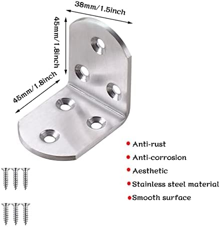 Heavy Obligation Nook Bracket,20PCS Stainless Metal Bracket,45mm*45mm*38mm Nook Brace for Wooden, Stainless Metal Nook Brace L Nook Bracket Joint Proper Angel Bracket Fastener for Wooden Cupboards