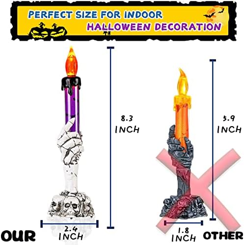 HeyKiddo Halloween Skeleton Hand Candle Mild, 4 Packs Battery Operated LED Candles Lights, Halloween Ornament, Skeleton Spooky Flameless Candles for House Desk Decor, Indoor Get together Decorations