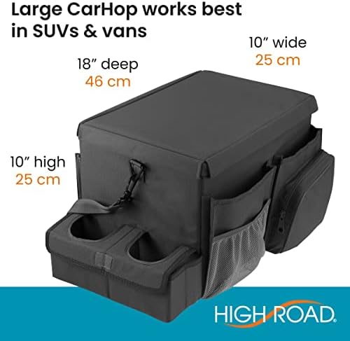 Excessive Street CarHop Automobile Seat Organizer for Youngsters and Adults with Cup Holder Tray, Aspect Pockets and Cooler Compartment (Massive, Black)