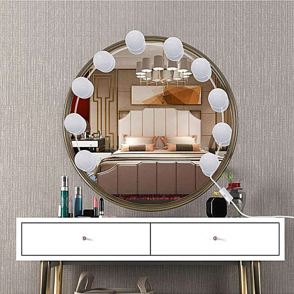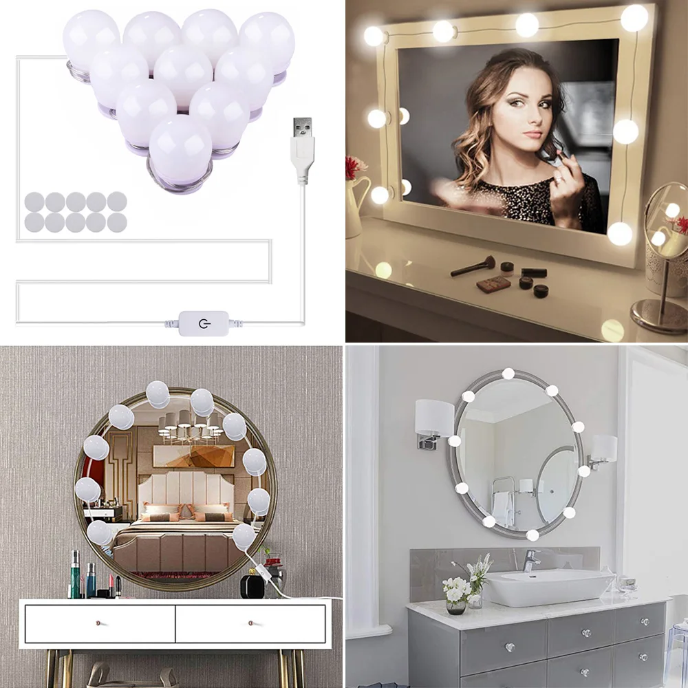 Hollywood Mirror Lights LED 10 adjustable Bulbs equipment Self-importance Make-up for wall dresser rest room with Contact Dimmer and 5V USB plug in