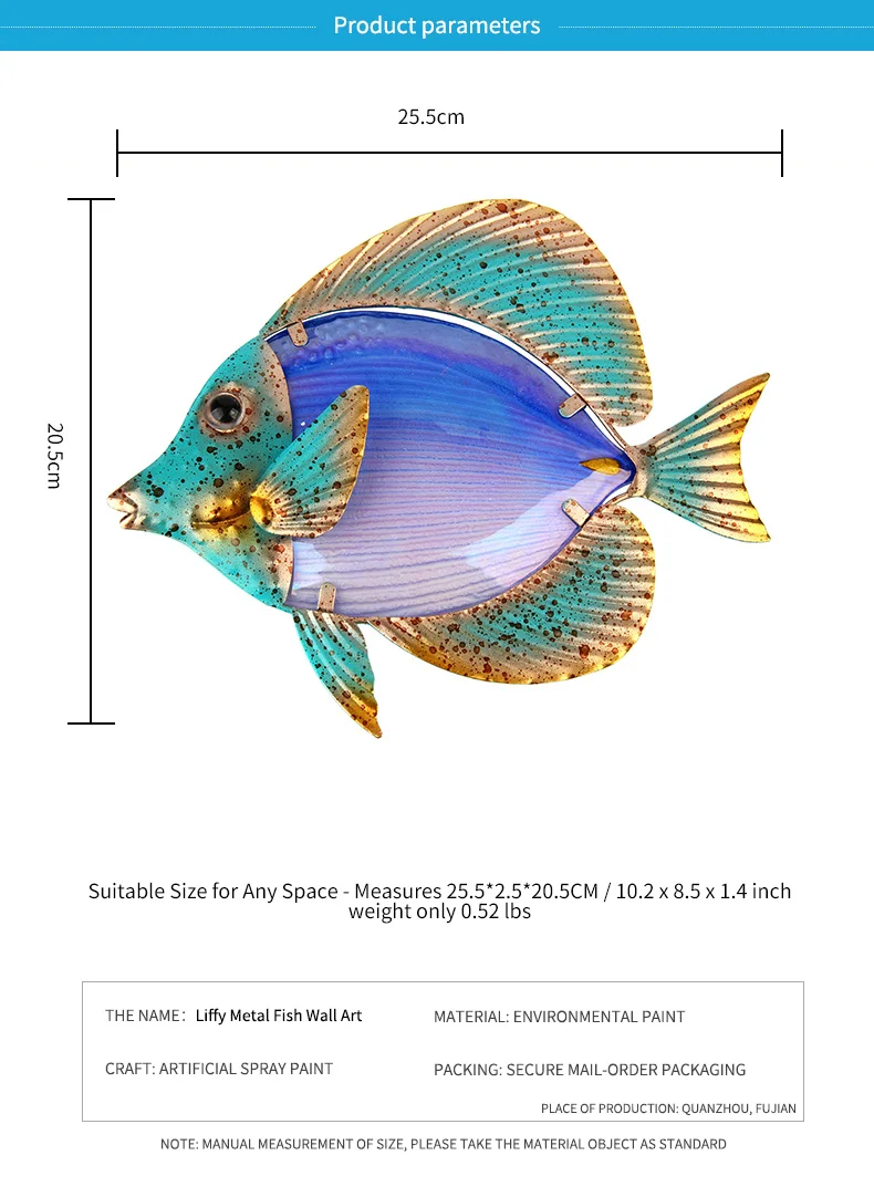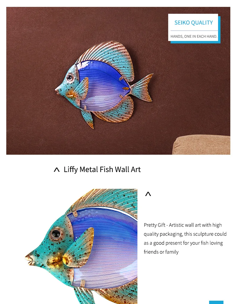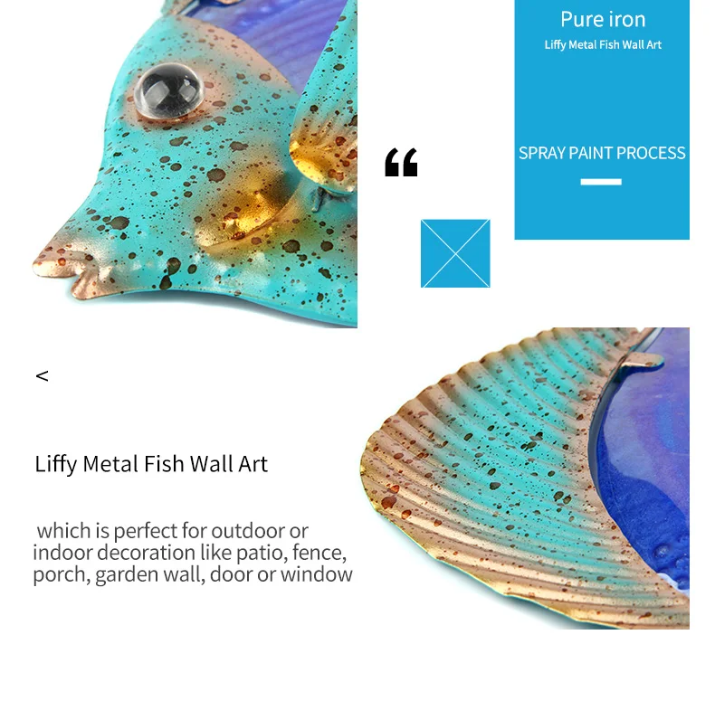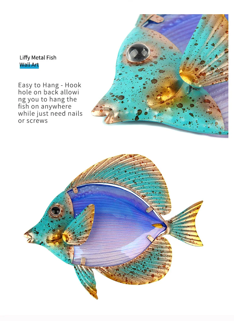 - Lovable Wall Decor – Manufactured from premium iron and handcrafted physique construction that the body is sturdy; In the meantime, the beautiful fish encompass vigorous eyes, cute mouth, stunning again painted glass sample and beautiful fins