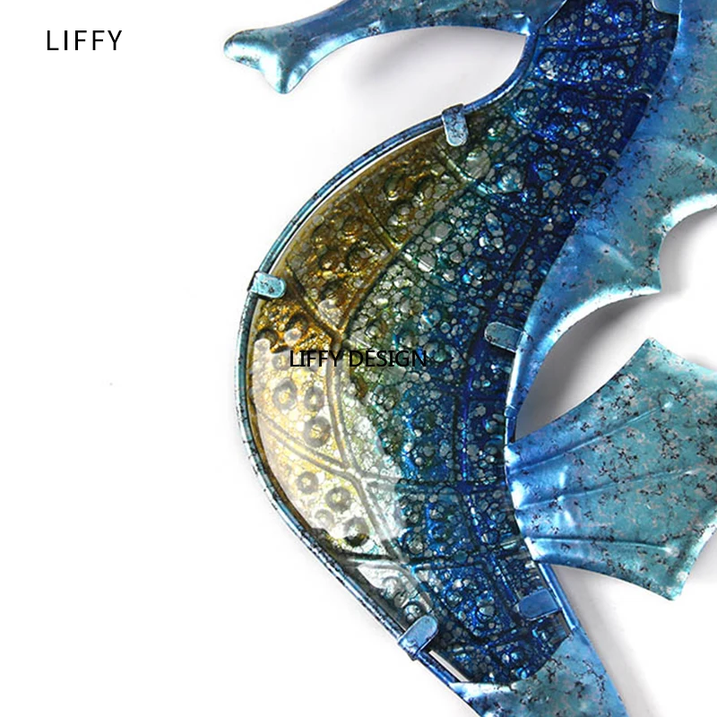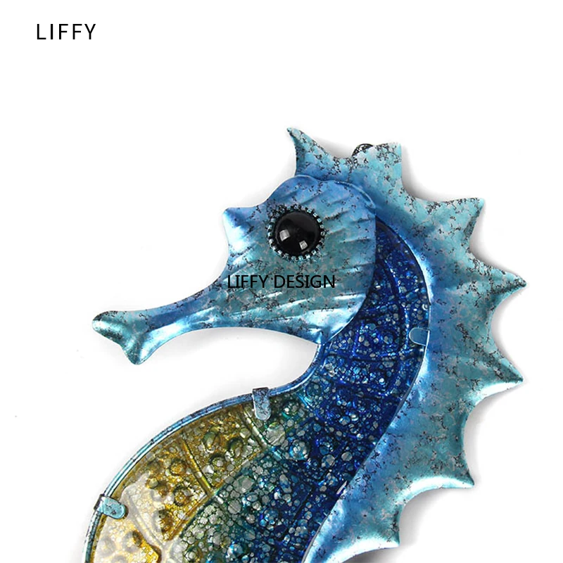 House Decor Metallic Seahorse of Wall Decor with Glass for Backyard Ornament Animales Jardin Miniature Statues and Backyard Sculpture