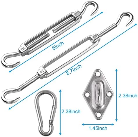 Adjustable Design: 6-8.4 inches adjustable turnbuckles with excessive load carrying capability which is tremendously match for the completely different sizes of solar shade sail. It may be eliminated with sunshade sail in horrible climate, similar to storm and gale, or if you find yourself not utilizing.