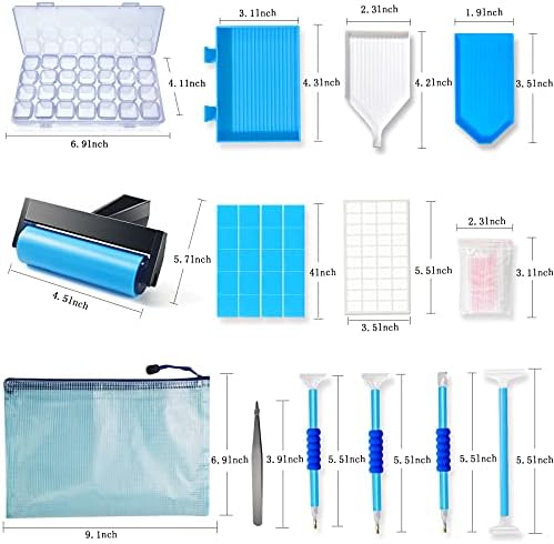 [Perfect Diamond Painting Accessories Kits] The diamond portray package embody: 1×Diamond portray curler, 1×Storage case,3×Diamond pen,1×Correction pen,3×Pen holders,3×Diamond trays,1×Tweezers,2×Sticker sheets,20×Glue clay,20×Plastic baggage,1×Clear instrument bag,complete 56 items.