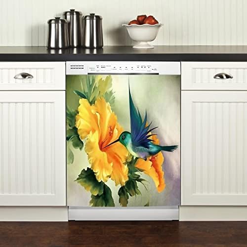 Hummingbird Magnetic Decal,Dishwasher Cowl Magnet Ornamental,Fridge Magnet Decor Fowl and Flower Door, Backyard Surroundings, House Home equipment Cupboard Cowl Sticker 23x26inch