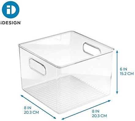 iDesign Plastic Fridge and Pantry Storage Organizer Bin With Handles, Container for Meals, Drinks, Produce Group, BPA-Free, 8″ x 8″ x 6″, Clear