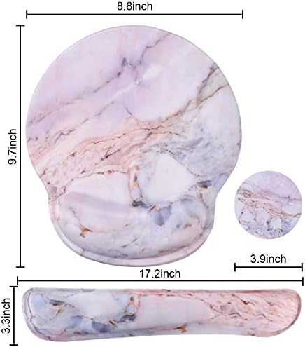 3 in 1 Set with Customary Measurement: The mouse pad with wrist relaxation measures 9.7inchx8.8inch, the keyboard wrist relaxation measures 17.2inchx3.3inch and the diameter of cup coaster is 3.9inch. This mouse pad set has glorious form and dimension, it’s appropriate for workplace work, dwelling, journey or different events.