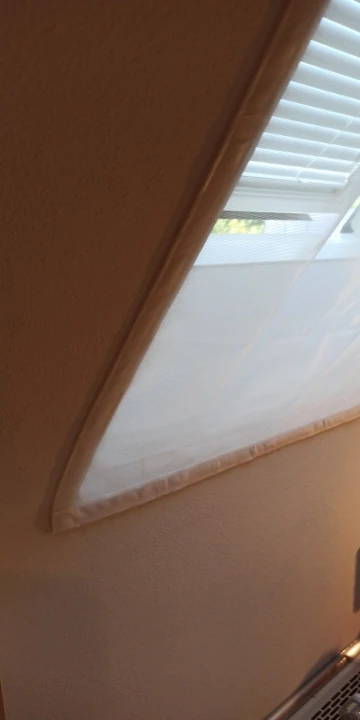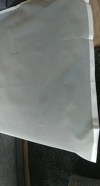 het scherm is op maat gemaakt na contact met de verkoper perfect.om dat het product is opgevouwen zitten er kreukels in. het is te herstellen door het te strijken ,wel een theedoek gebruiken(zie foto)