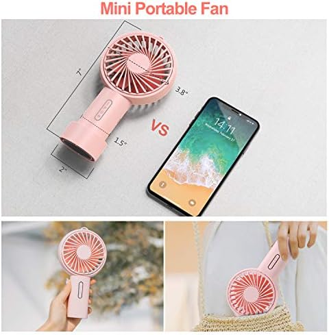 IPOW Mini Handheld Fan Private Transportable Fan 3 Velocity Adjustable Angle Detachable Base Lanyard USB Recharging Battery Operated Small Desk Cooling Face Fan for House Tenting Disney Journey Peach Pink