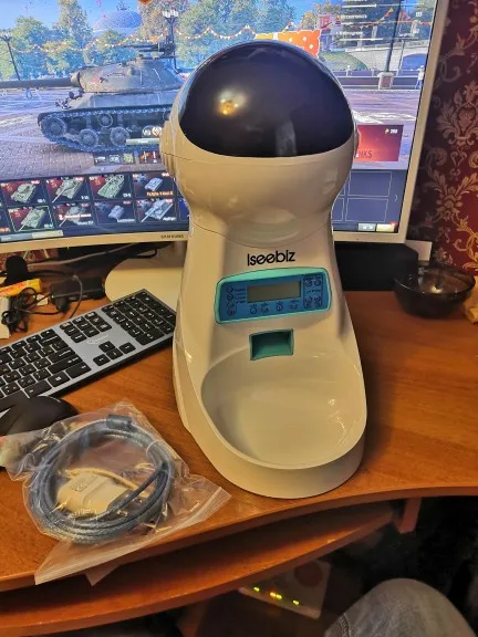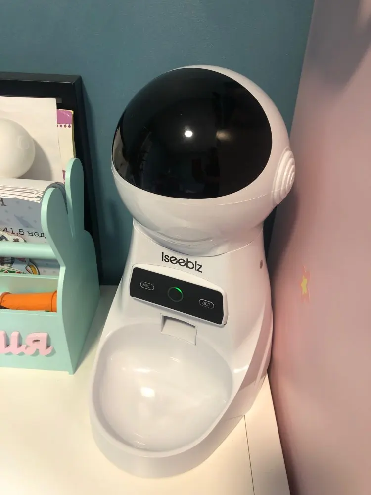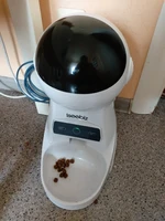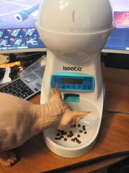Доставка быстрая. Кормушка прикольная. Брали самую простую. Корма влезает много. Записываемый голос воспроизводит тихо (достаточно, чтобы кошка услышала) и три раза (чем сильно удивили кошку). Даже без инструкции понятно как и что настривается. Одна порция равна 3.5г. В розетку включили, время подачи и количество порций задали, голос записали и все. Кошка отреагировала сначала настороженно, но когда поняла, что это её обед, все недоверие отбросила))). Периодически пытается “выковырить” ещё порцайку)). Товаром и доставкой довольна. Посмотрим как долго прослужит.