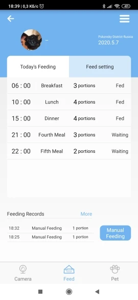 The app sends alerts every time the pet feeds. Very convenient. You sit at work, and you on the phone push-notification: The cat is fed) and you are calm))