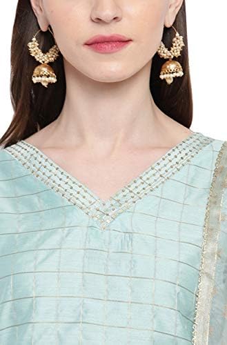 Be the first to review “Janasya Indian Ladies’s Sky Blue Artwork Silk Kurta with Pant and Dupatta”