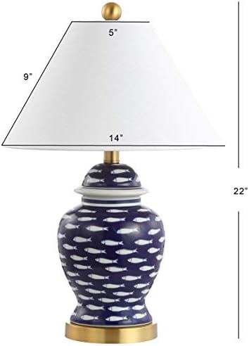 JONATHAN Y JYL6209A Faculty of Fish 22″ Ginger Jar Ceramic/Metallic LED Desk Lamp Coastal Cottage Bedside Desk Nightstand Lamp for Bed room Residing Room Workplace School Bookcase LED Bulb Included, Navy