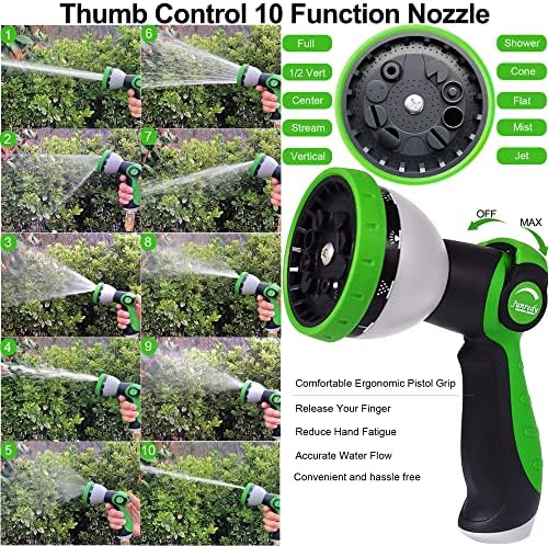10 Watering Patterns for Each Watering Want: In comparison with most 9 sample backyard hose nozzle, our hose nozzle sprayer with 10 sample for extra selections. Alter your spray from a bathe blast sample to full, stream, mist, flat, cone, vertical, jet, middle or 1/2 vert spray sample.Ergonomic handgrip for easy operation and uninterrupted use. You may really feel the standard the moment you decide up the 25Ft versatile and expandable backyard hose