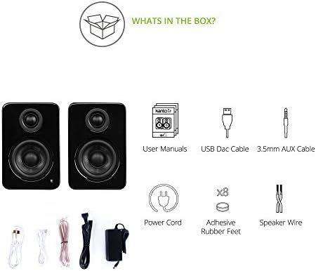 Kanto YU2 PC Gaming Desktop Audio system | 3″ Composite Drivers | 3/4″ Silk Dome Tweeter | Class D Amplifier | 100 Watts | Constructed-in USB DAC | Subwoofer Output | Pair | Gloss Black