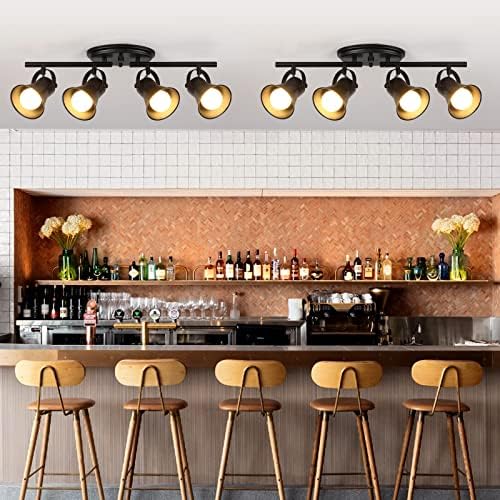 KEESFU 4-Mild Observe Lighting Package,Black Semi Flush Mount Ceiling Mild with 4 Rotatable Mild Heads,Trendy Accent Lighting for Livingroom,Bed room,Hallway,Artwork Wall,Lavatory,Kitchen.(4-Mild)
