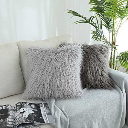Kevin Textile Deluxe House Ornamental Tremendous Tender Plush Mongolian Fake Fur Throw Pillow Cowl Cushion Case (18 x 18 Inch, Mild Gray)