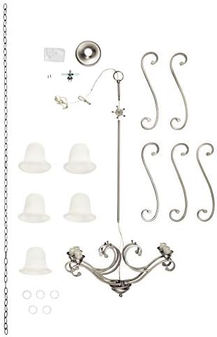 What’s within the Field: (1) Mounting Strap, Strap Mounting Screws, Hex Nuts, Nipple, (1) Cover, Screw Collar Loop, Chain and (5) Glass Shades. Bulb(s) not included.