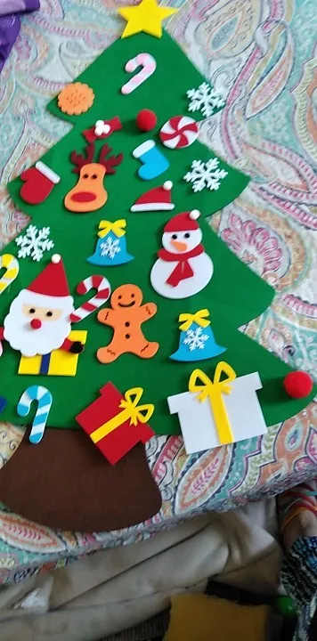 This Christmas tree pendant are product of high-grade, non-toxic, environmentally pleasant felt permitting youngster to freely stick ornaments on wherever of the tree.