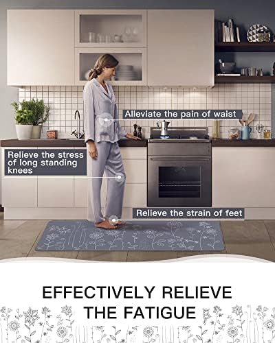 Kitchen Rugs and Mats Cushioned Anti Fatigue, WHTOR 2 PCS Non Skid Kitchen Runner Rugs, Waterproof Reminiscence Foam Kitchen Flooring Mat, Standing Desk Mat for Home, Sink, Workplace, Kitchen (Grey)