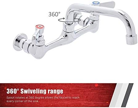 Kitchen Sink No Lead Faucet – DuraSteel 8″ Heart Wall Mounted Business Kitchen Sink Faucet with 14″ Swivel Spout – NSF Licensed – Twin Lever Handles – Brass Constructed & Chrome Polished