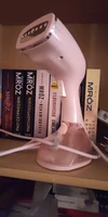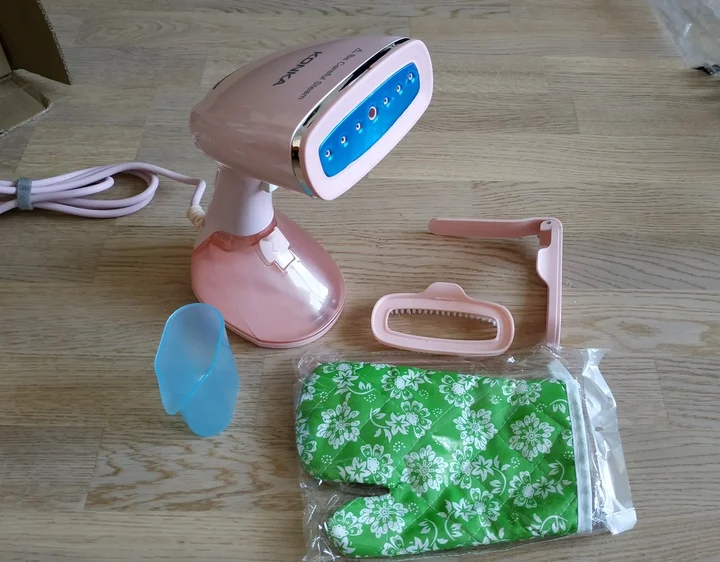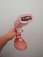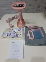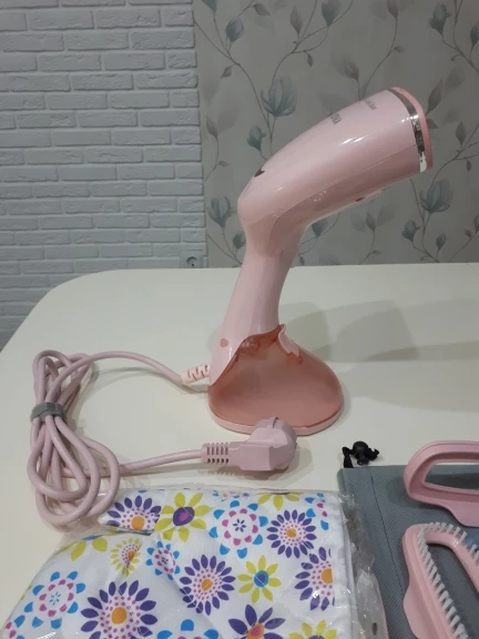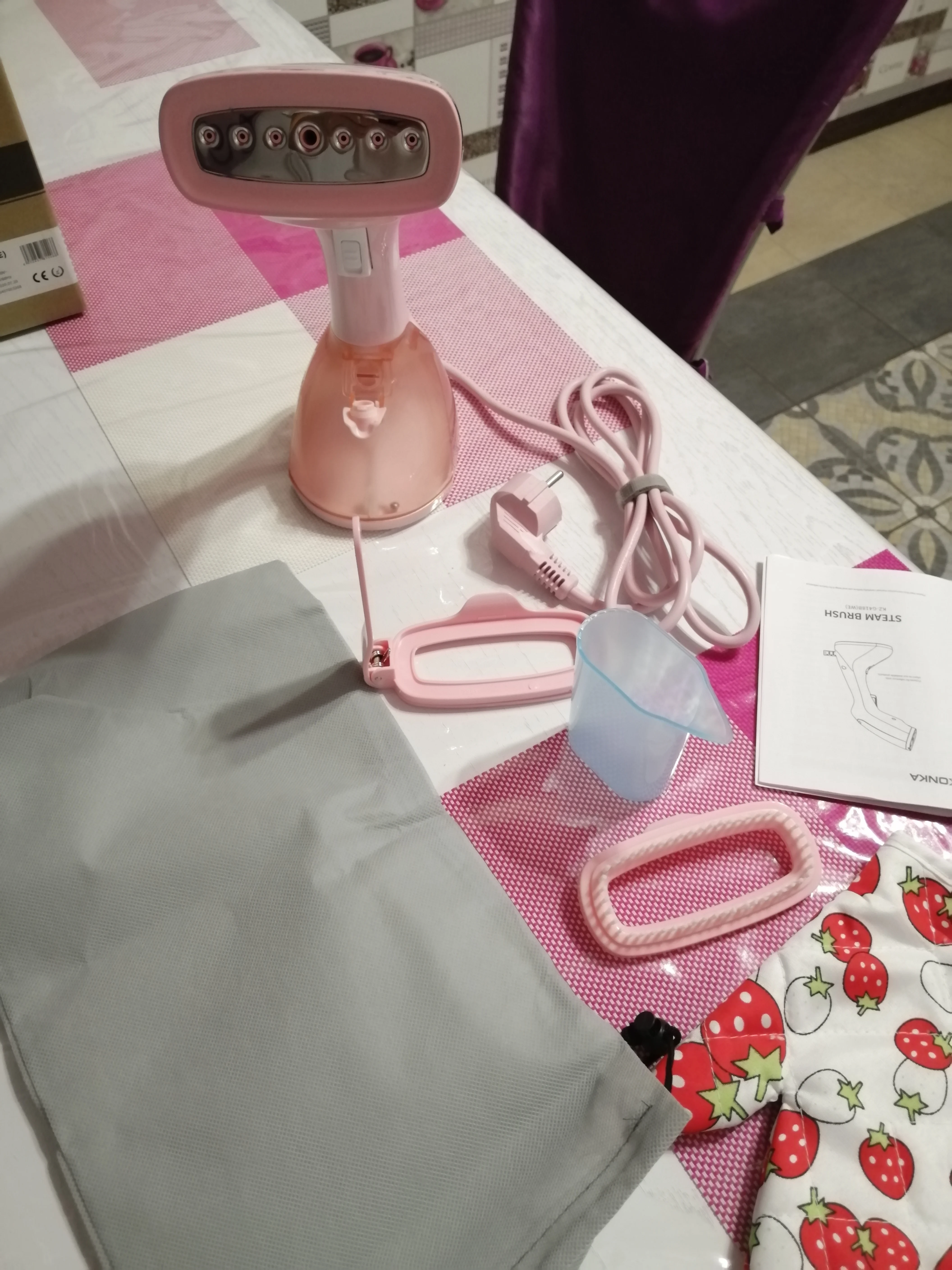 I use the steamer for a month, while I’m happy. Well smoothes T-shirts, sweatshirts, chiffon, polyester, cope with a thin woolen coat. Enough 1-2 times to hold, and the folds are no longer visible. There is automatic and manual mode, but the buttons are so located that often automatic turns on accidentally. Sometimes the steamer spits with water. In the kit there is a nozzle-brush, a nozzle-clip and a small potholder. I’m talking without Pothook, it’s basically not needed.