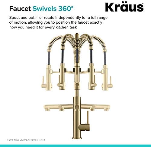 Kraus Improve your kitchen to skilled fashion with the all-metal Artec Professional™ kitchen faucet, that includes heavy-duty all-metal building with an open-coil spring spout. The multi-functional design features a rotating pot filler for filling tall pitchers and enormous pots, and a pre-rinse sprayer that blasts away robust residue. Comfortable rubber nozzles will let you wipe away mineral build-up, guaranteeing lasting efficiency and a strong circulation. Magnetic docking snaps the sprayhead again into place for a safe maintain, providing most effectivity for on a regular basis duties.