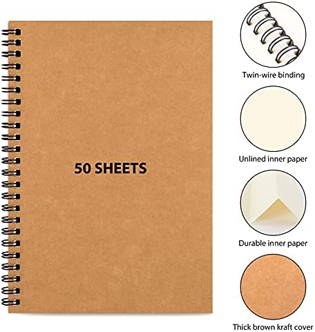 LABUK 7 Pack A5 Unlined Spiral Pocket book 100 Pages Clean Pocket book Journal Bulk Sketch Books 8.3″x 5.5″ Smooth Cowl Kraft Memo Notepads Diary Planner, 50 Sheets for College Journey Workplace Provides (Brown)
