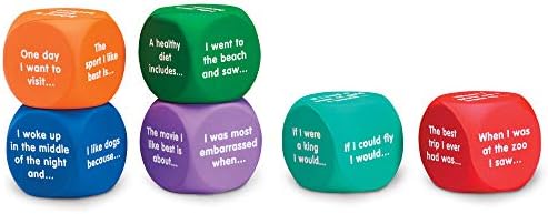 Encourage all types of inventive thought and writing with this set of 6 writing immediate cubes. Toss the cubes to spur dialog and composition of fiction and non-fiction textual content. Nice for group or particular person writing. Nice for ages 5 and up, or Grades 1 and up!
