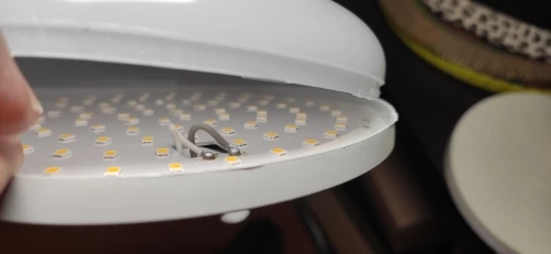 The ceiling itself is made qualitatively. Shines Brightly (36 W). Inside the entire area is a matrix of LEDs. A minute after turning on the warm. No flicker!