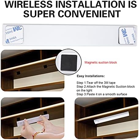 LED Closet Gentle,Movement Sensor led Gentle Strip,Wi-fi Beneath Cupboard Lighting for Kitchen,Battery Powered lamp for Bedrooms LivingRoom,Moveable Evening Gentle with Rechargeable Inner Battery-3 Pack