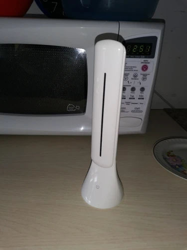 The lamp is good, small, in height somewhere 23 cm, three modes of brightness light, shows time, temperature, date. Delivery was only 3 days by courier to home
