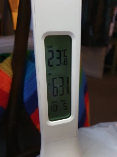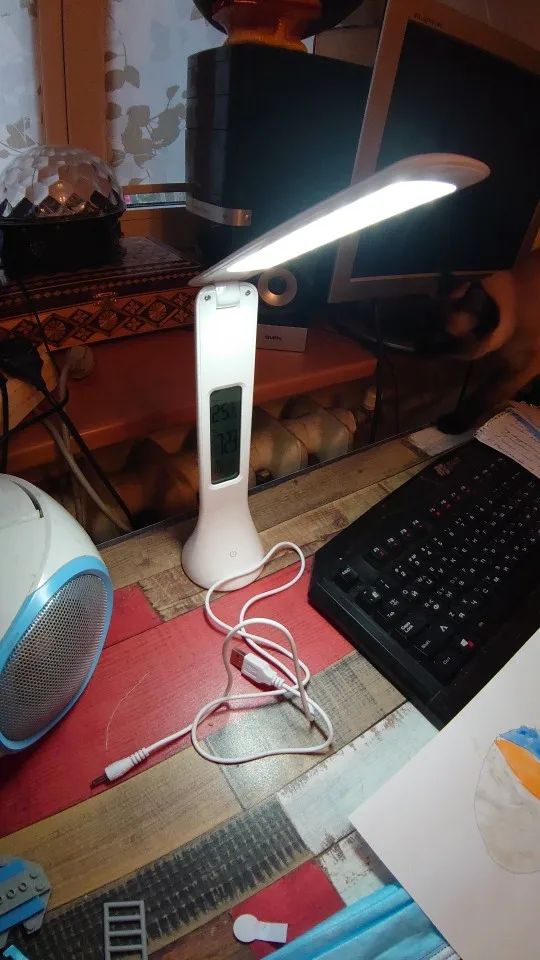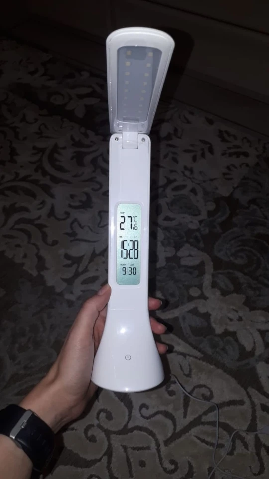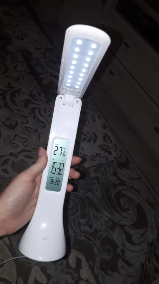 The lamp is super. There are clock, alarm clock, thermometer and calendar. Delivery fast via new mail. The goods and seller recommend