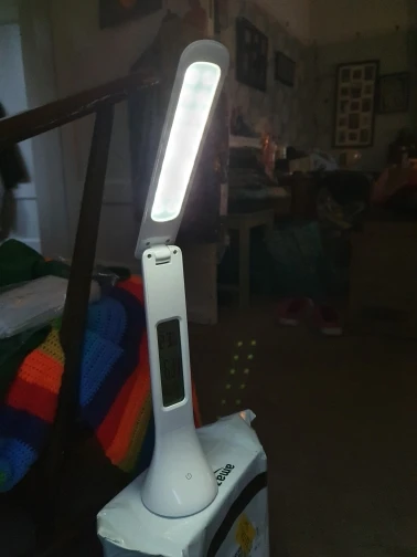 I’m super happy with the lamp! Perfect size, easy to carry and save anywhere. It has 3 levels of white light intensity. Light up very well! The charged battery comes and works perfectly. It’s a joy to have a lamp without wires in between. Comes the included battery of the clock, temperature and date, so perfect. Thank you very much to the seller! In addition, it has arrived in just 2 days to Spain. I recommend 100%!