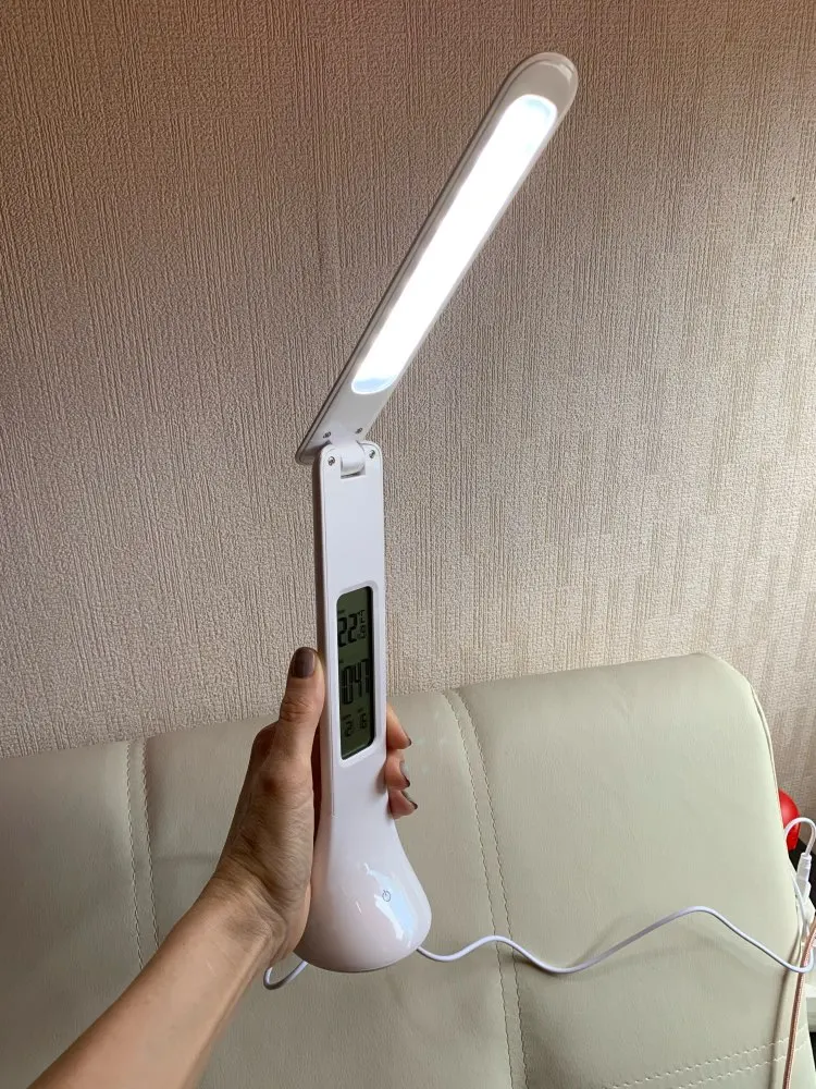 Specification: LED Desk Lamp Foldable Dimmable Contact Desk Lamp with Calendar Temperature Alarm Clock desk Gentle night time lights LAOPAO