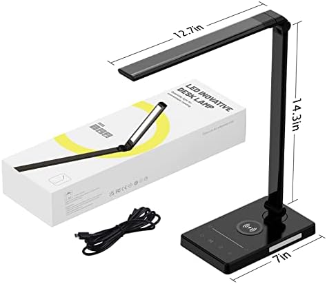 LED Desk Lamp with Wi-fi Charger, Desk Lamp with USB Charging Port, Contact Management,Workplace Lamp with Night time Mild, Black Led Desk Lamps for Residence Workplace,5 Dimmable Modes 7 Brightness Degree,Auto Timer