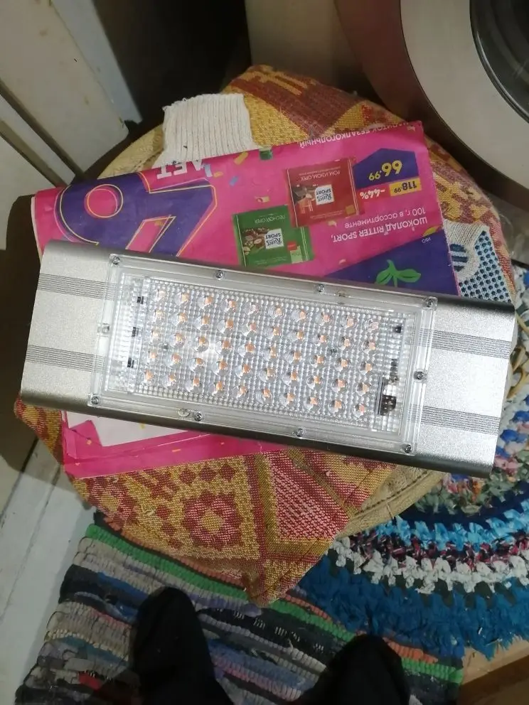 Дошло за две недели, так быстро к нам вообще никогда ничего не приходит. Сначала показалось что такая лампа не может быть от 220в., но оказалось все нормально. Жестянки на обороте примерно как фольга, греется примерно до 40° , пока проработала 2 часа, полет нормальный. Но соглашусь с предыдущими отзывами охлаждение лучше доработать. Светит очень мощно, у соседей в окнах видно такой свет, но ощущение складывается что у них детский фонарик. Рекомендую!
