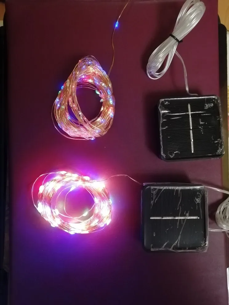 Good Garland for your money. Charged per day the battery for 600mA is enough somewhere up to 1,5-2 nights, however it is already very dim. The unit itself is made qualitatively: The solar panel protects the compound, and the housing has rubber gaskets. The length is not measured. Shipping is average on time and tracked.