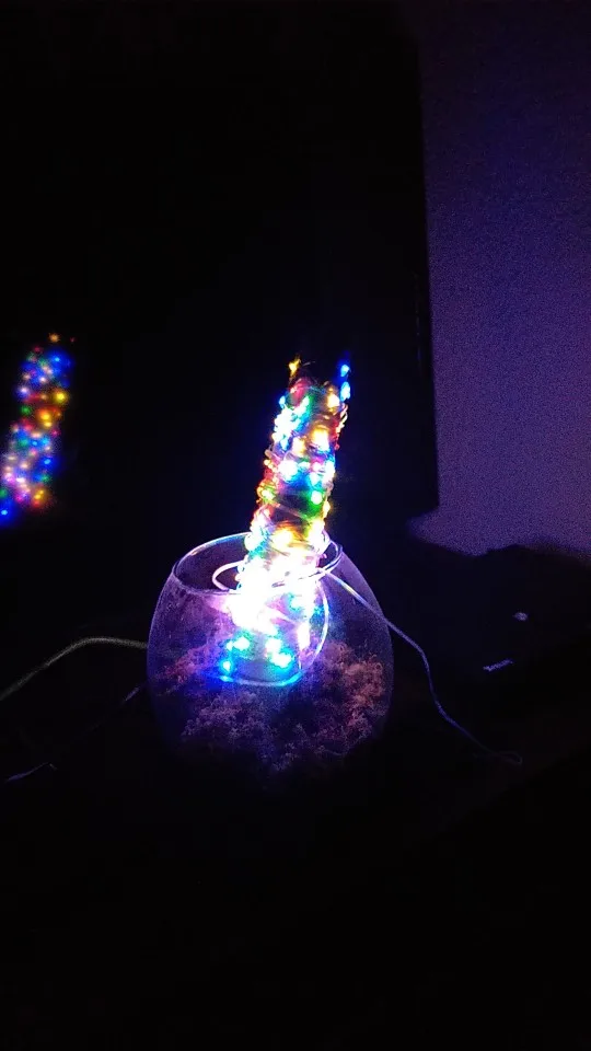 He arrived long before expected. It’s a very long series. She looks very pretty. The burden lasts all night. I asked her to decorate my house at Christmas. But I’m currently using it to illuminate the inside of my dining room, because Hurricane Delta passed and we ran out of light. It’s been very useful. I want to order another one I bought is 22 meters with another perfectly covered my whole house. The price seems very suitable to me. It’s very thin but illuminates quite a bit. It also has several ignition modes. The one I ordered ea multicolor and it looks super cute.