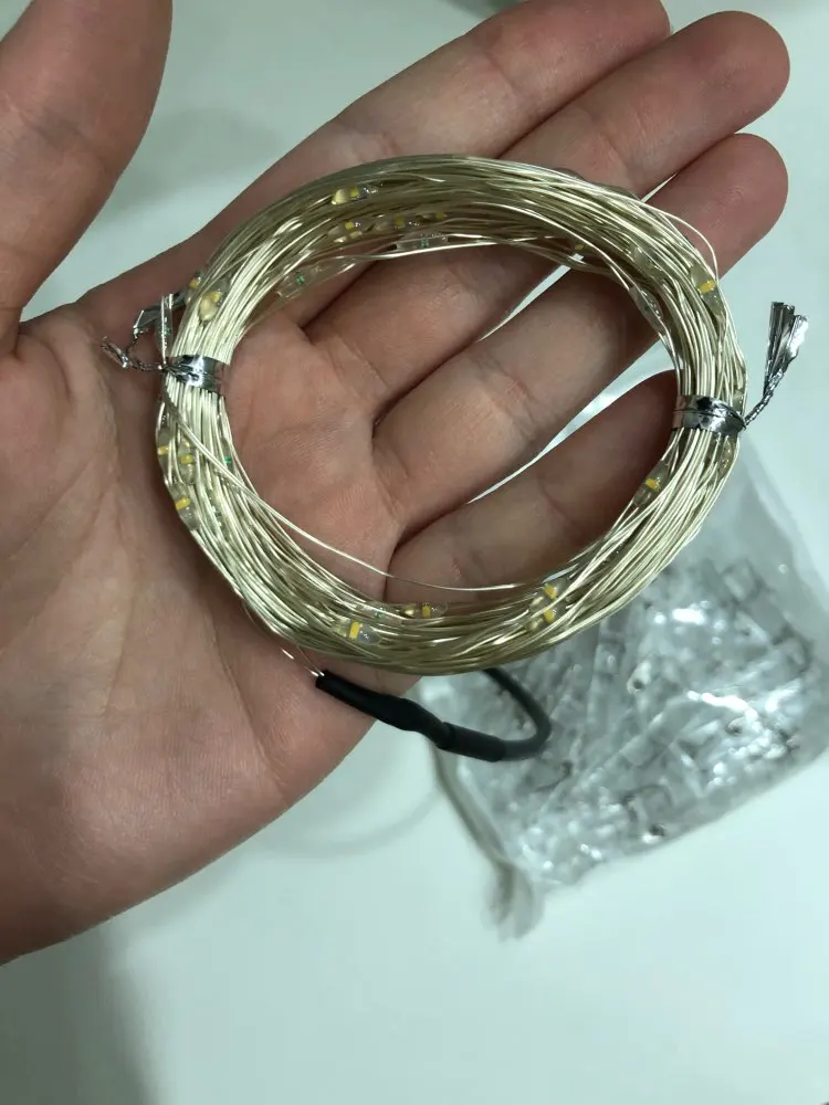 100% compatible with the description. Light is quite strong. The cable is made of iron wire, which can be molded. Need batteries-3 X “sticks”, which is not included. Cable can be no problem put into the bottle to get decoration. Very fast shipping. To Polish dotarło in about 1 week.