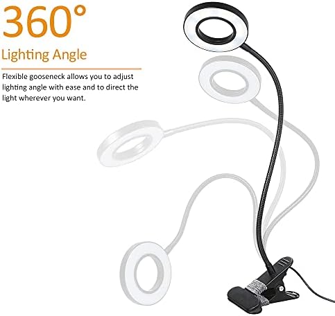 Clip on Studying Lamp with 3 Coloration Modes, Brightness Adjustable, Mattress Lamp with Clip for Make-up, Laptop, Laptop computer, Desk, Mattress