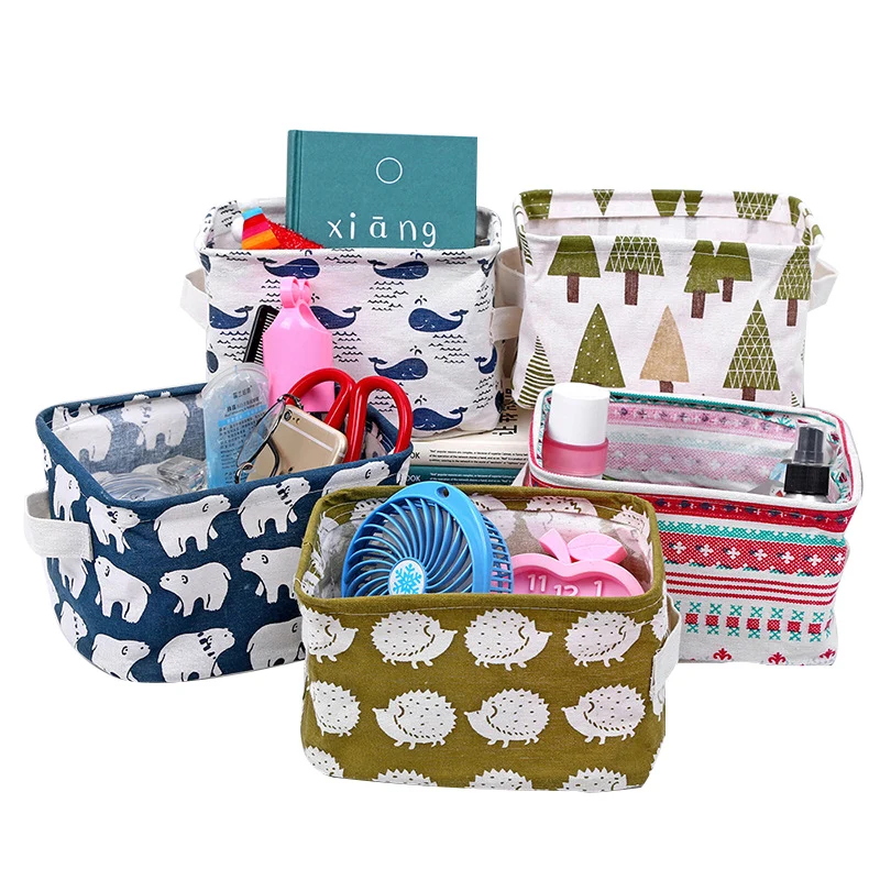 Linen Desktop Storage Field Waterproof Toy Sundries Storage Basket Beauty Underware Storage Organizer Workplace Stationery