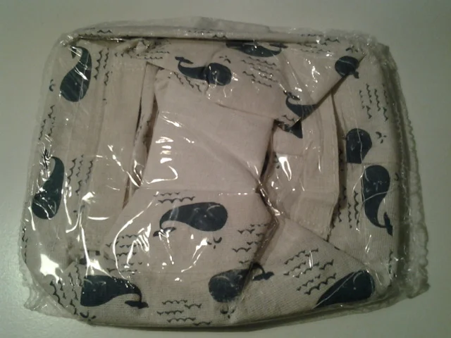 It’s taken 22 days to arrive. Product equal to photo and description. The fabric is laminated. It’s perfect on ikea’s shelf.