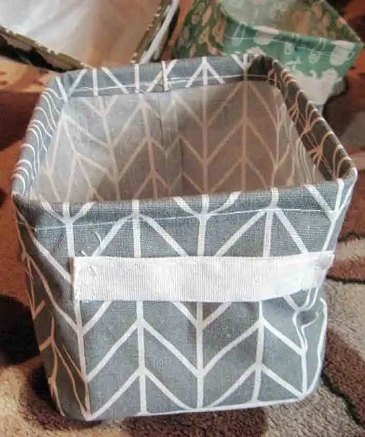 Ящички из плотного материала, внутри как клеёнка, а снаружи ткань. Немного торчат нитки, но это ничего. В целом довольна