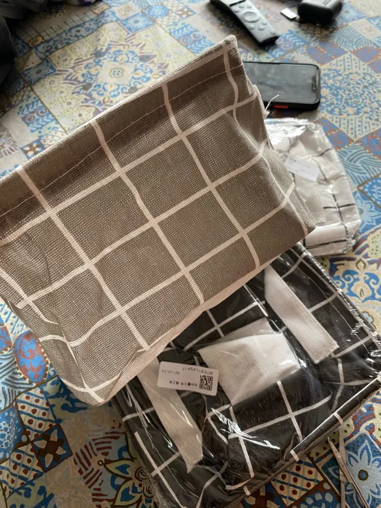 Boxes liked. Pretty roomy. Sewn well, threads do not stick out, there is no sharp chemical smell. Delivered to Ukraine quite quickly. On June 5 I ordered, already on June 15 were in Ukraine. Customs parcel only passed in 5 days. Then out of sight disappeared at all. 10 days was not tracked by any postal operator. Today is July 1st, brought the post office of ukrmail home. For some reason, “sodrala” 5 UAH. For shipping. Thank you for bringing me. As for the boxes-very cute. I’m happy with the purchase. Thank you for the good product.