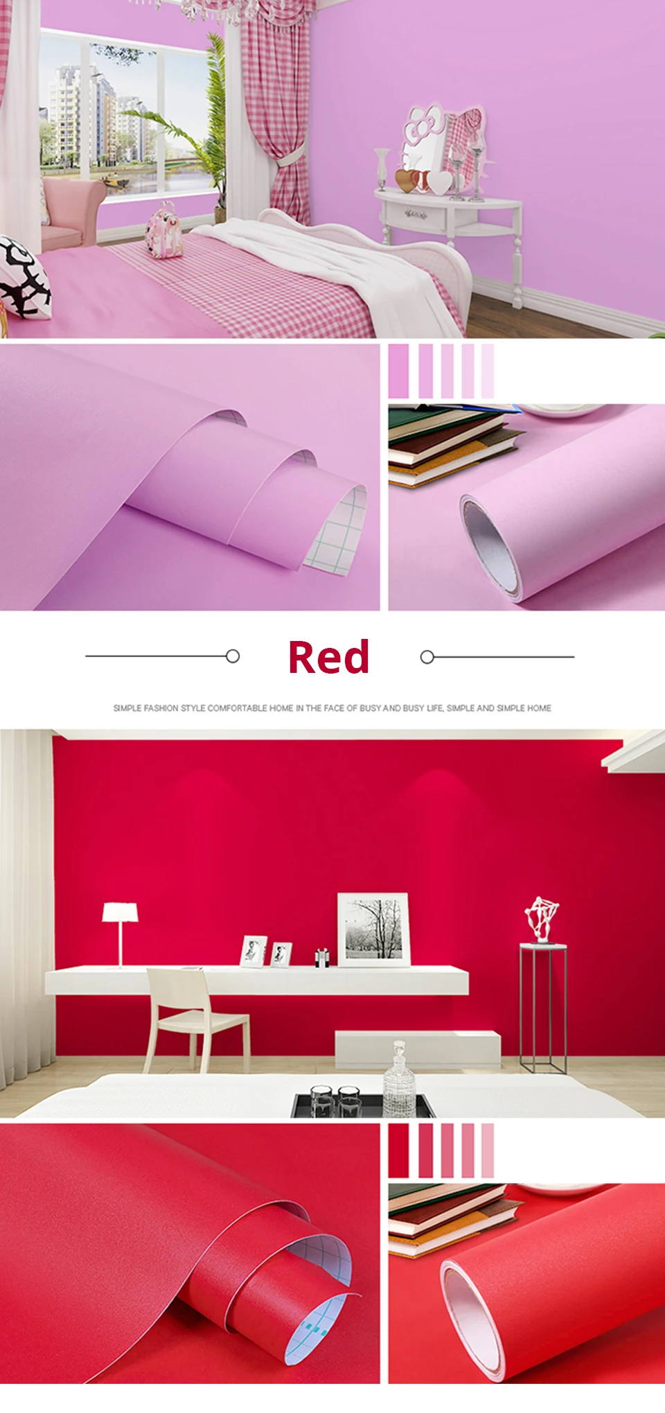 Specification: Residing Room Decor Strong Colour Self Adhesive Vinyl Wallpaper Waterproof Movie Oil-proof Kitchen Cupboard Desktop Renovation Sticker